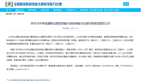 12月12日,2020年全國職業院校技能大賽教學能力比賽現場決賽在湖南株洲市圓滿結束。我校護理學院洪霞教學團隊和藥學院陳鈺教學團隊分獲全國職業院校教學能力比賽二等獎和三等獎。