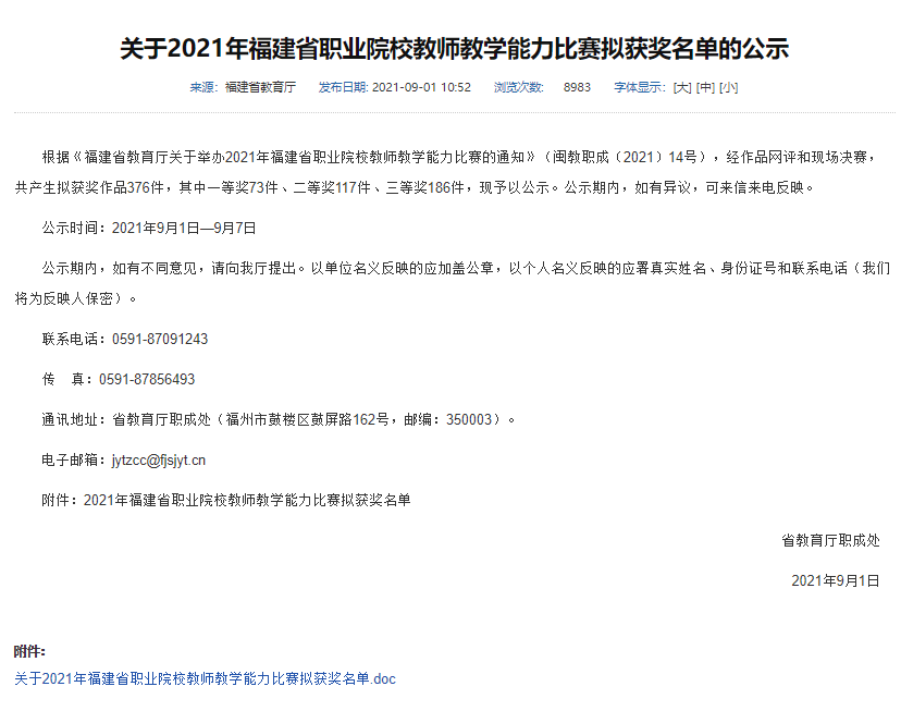 2021年福建省職業院校教師教學能力比賽我校擬獲獎名單匯總表