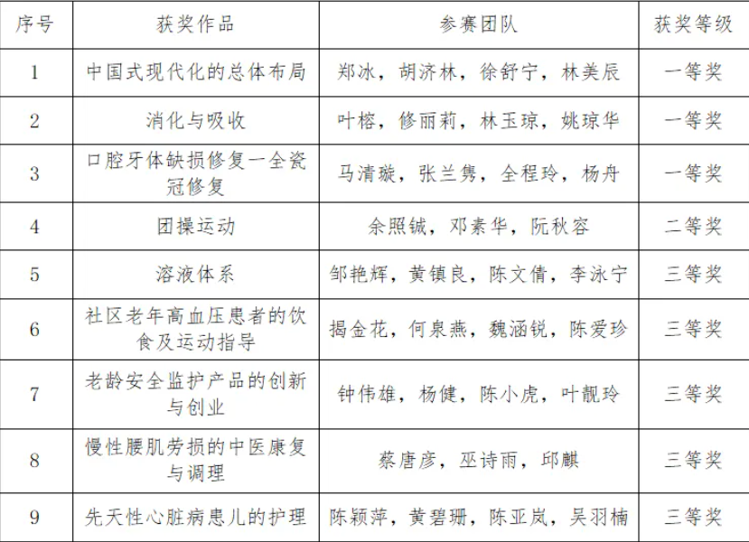 2024年福建省職業院校教學技能大賽教學能力比賽獲獎名單
