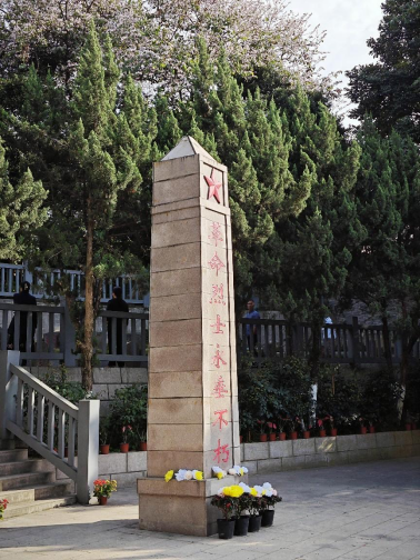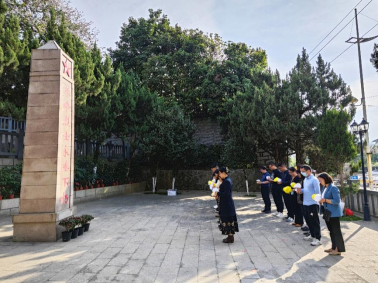 下午教務處、實習實訓中心的黨員們準時來到龜山烈士陵園。在革命烈士紀念碑前,全體黨員肅立默哀,向烈士們致以崇高的敬意和深切的緬懷。隨后,大家手持紙花,依次走到革命烈士紀念碑前,輕輕地將紙花擺放在碑前,表達對烈士們的敬仰和哀思。