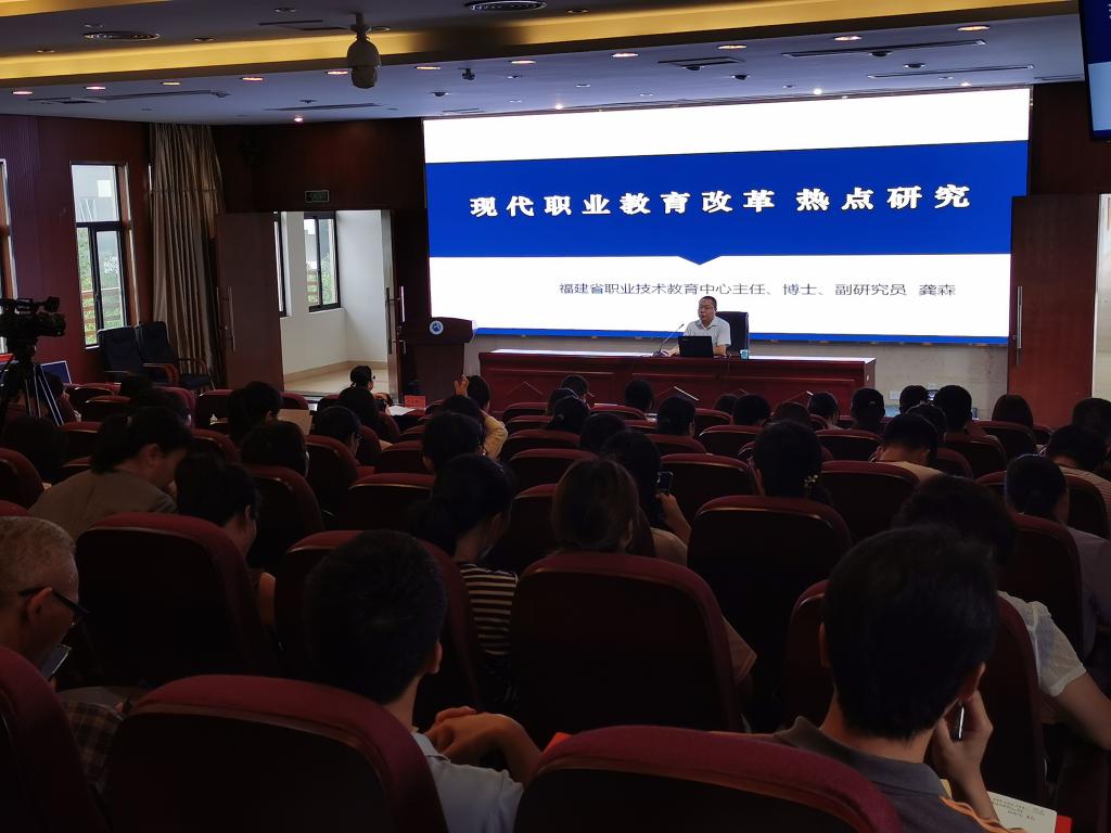 2021年5月13日下午,教務(wù)處邀請福建省職業(yè)技術(shù)教育中心主任龔森博士來我校開展《現(xiàn)代職業(yè)教育改革與研究熱點》專題講座。本次講座在實訓(xùn)樓四樓報告廳舉行,由教務(wù)處副處長李淼淼主持,各系教師及相關(guān)職能部門行政人員聆聽了此次講座。