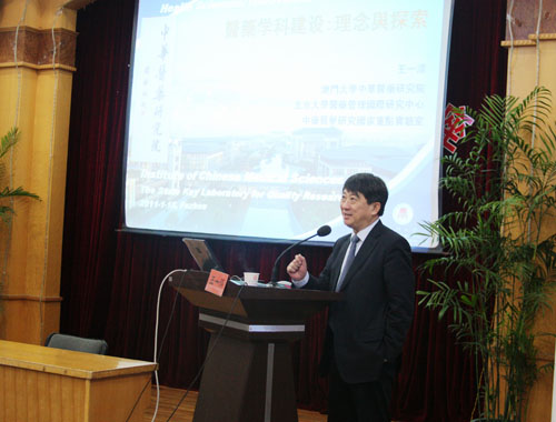 2011年1月5日,澳門大學中華醫藥研究院院長王一濤教授到校講學。王一濤教授現任澳門大學中華醫藥研究院院長、教授、博士生導師,北京大學醫藥管理國際研究中心主任兼教授,中國中醫科學院首席研究員和教授,是我國著名的中醫藥學家,中醫藥發展戰略專家。