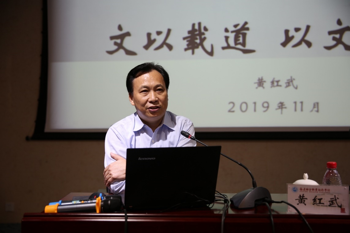 黃紅武教授的講座案例鮮活、語言生動、娓娓道來,讓我們深刻地認識到“文”何以能“載道”,“文”如何能“化人”,增強了我們的文化自信和文化自覺。