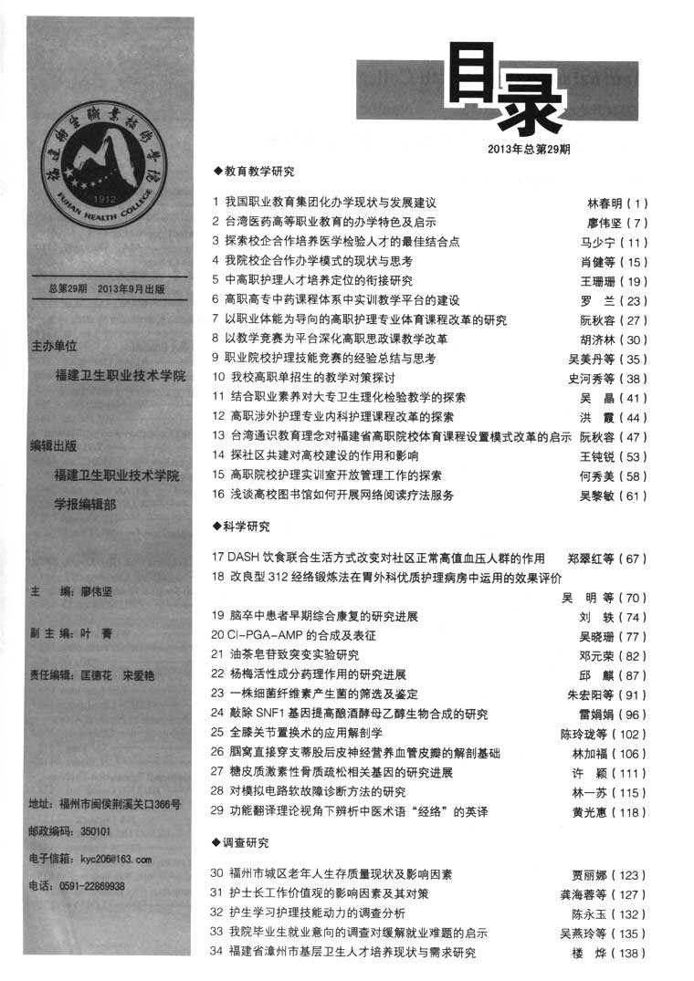 福建衛生職業技術學院學報2013年總第二十九期 目錄