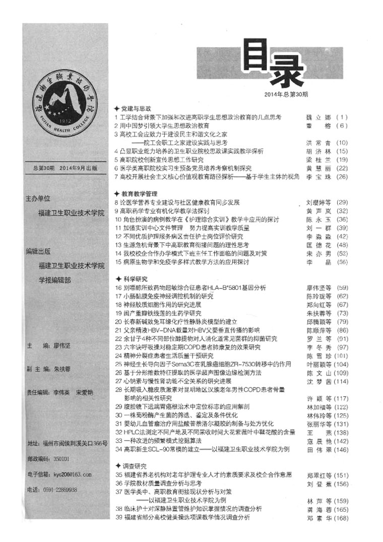 福建衛生職業技術學院學報2014年總第三十期 目錄
