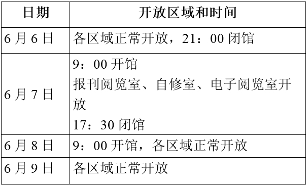 根據(jù)學院辦公室《關于端午節(jié)放假的通知》,端午節(jié)放假時間為6月7日至6月9日,放假期間,圖書館開放時間調(diào)整如下: