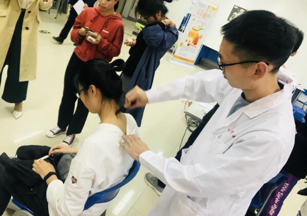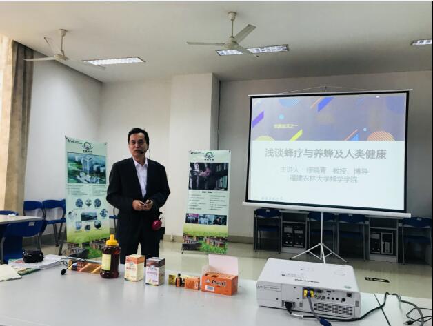 活動剛開始,蜂療研究所市場部經理陳凌鷹向大家介紹了蜜蜂的基本知識和蜂療研究所的發展歷程。接下來,蜂療研究所所長、福建農林大學蜂學院前院長繆曉青教授結合蜜蜂健康文化,親自為大家講述了自己和蜜蜂的結緣故事以及他研究發明神蜂精的歷程,非常具有啟發意義。最后,來自蜂療醫院的醫生介紹了蜂療手法和療效,并為參與活動的師生們現場實踐刮療手法,大家踴躍參與體驗,并紛紛表示這種蜂療手法效果顯著,體驗感受很舒適。