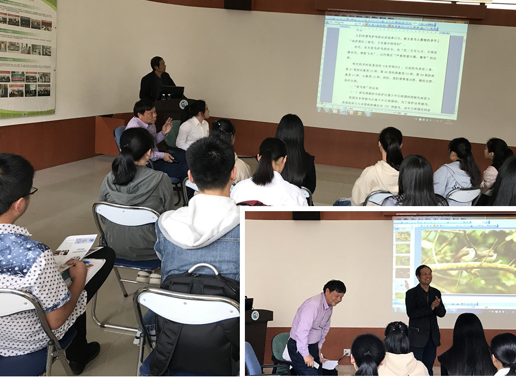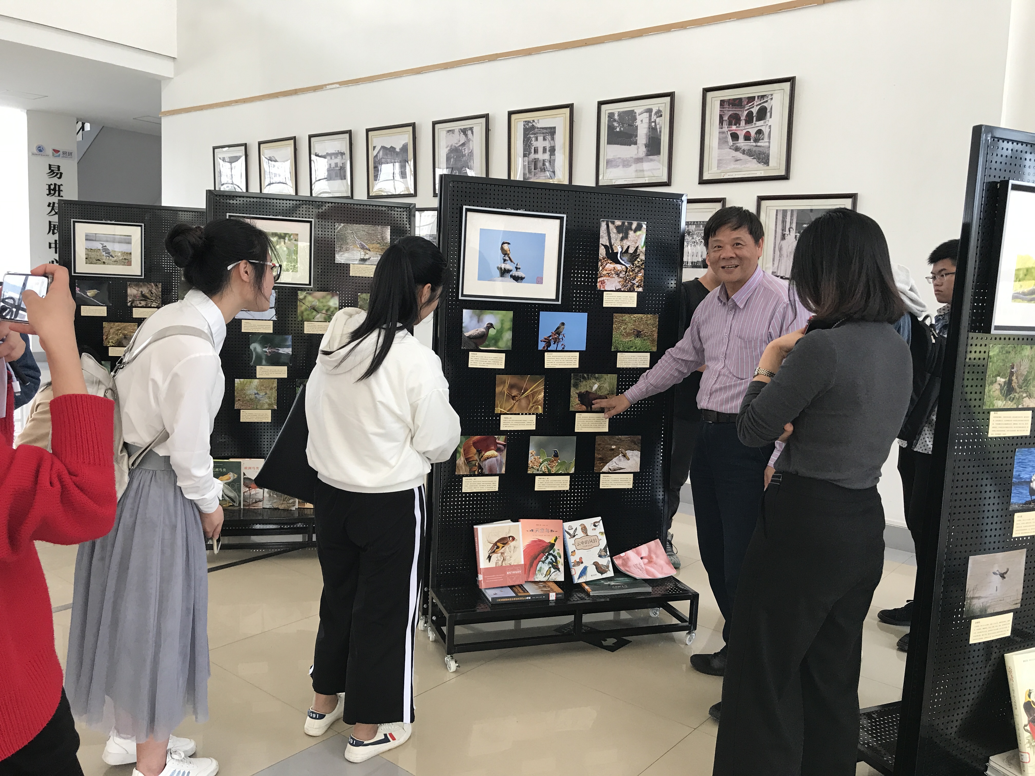 王屏老師對鳥類攝影情有獨鐘,通過多年的創(chuàng)作積累,拍攝到了許多珍貴相片,不但具有一定的藝術(shù)性,而且很有科普價值。值得一提的是,其中很多相片攝于我們校園,體現(xiàn)了我院清新自然的生態(tài)美。活動中他向大家科普了鳥類相關(guān)知識,并生動地描述了自己多年的拍鳥經(jīng)歷,現(xiàn)場有問有答,氣氛活躍。之后,還帶領(lǐng)大家到圖書館一樓攝影展前細致的講解了他拍攝的作品,大家進行了更加深入的交流討論。通過這次活動增強了我們與大自然和諧共生的意識,積極響應了十九大報告提出的生態(tài)文明建設號召。
