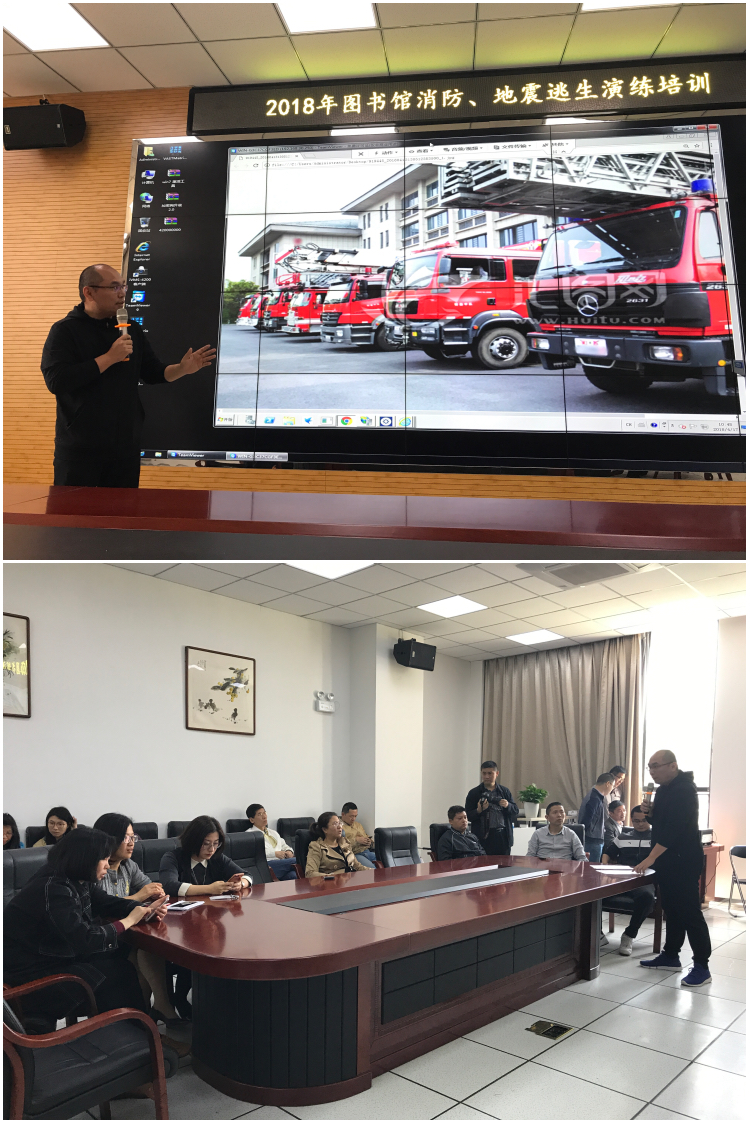 2018年4月17日下午2:20,我館聯合保衛處、現代教育中心、臨床醫學系,在圖書館大樓組織開展了地震逃生演練,由保衛處處長蘇愛華、張麗萍副館長等負責現場指揮,期間在館師生參加了此次演練。