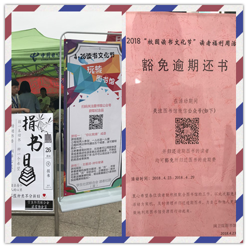 讀者協(xié)會(huì)在捐書區(qū)號(hào)召并接收全院師生捐贈(zèng)的圖書,更有“讀書福利周”——全部歸還超期圖書可豁免罰款、圖書漂流等活動(dòng)。
