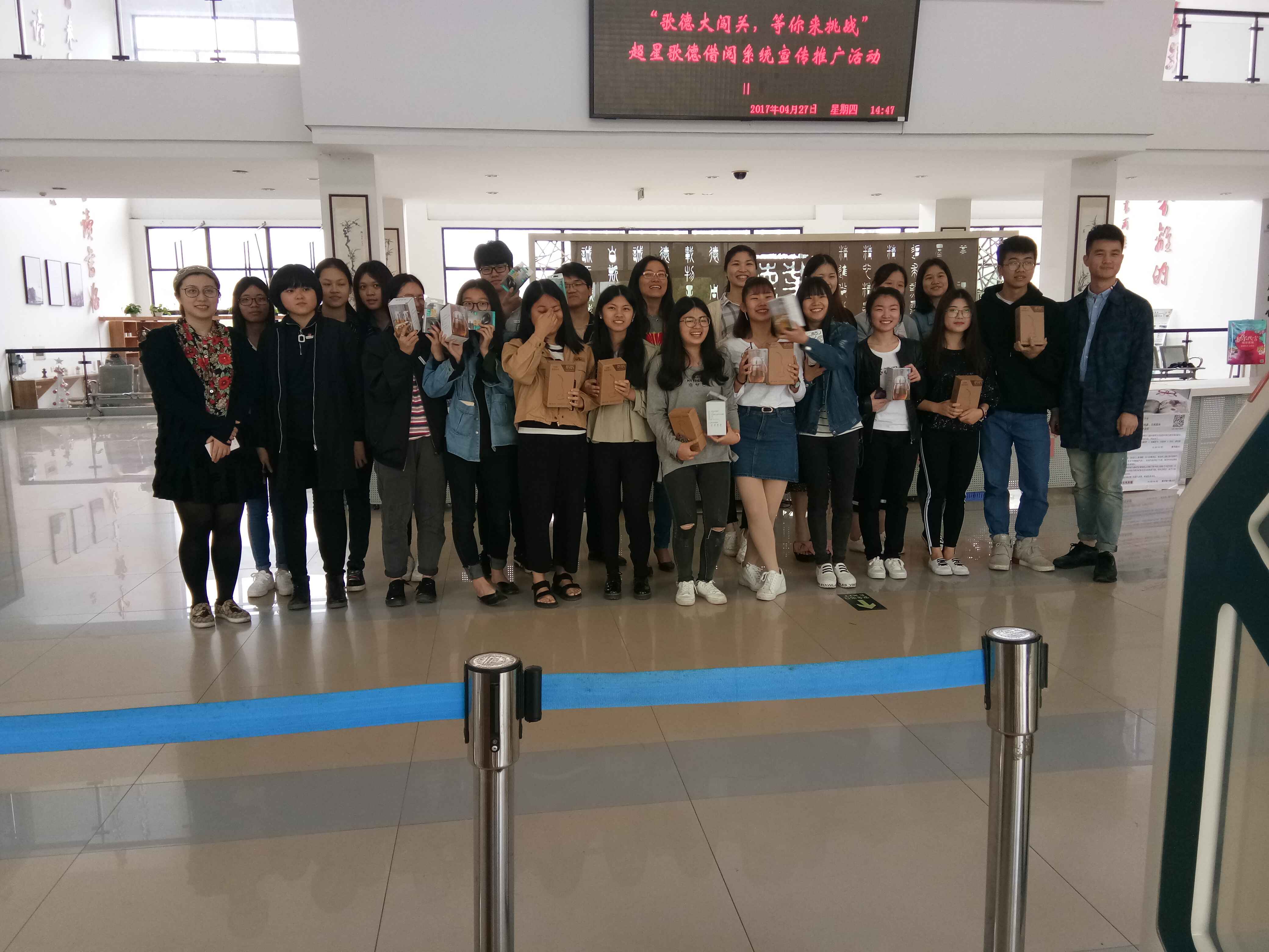 2017年4月27日下午,圖書館在一樓大廳舉辦了世界閱讀日系列活動之“歌德大闖關 等你來挑戰”歌德借閱系統宣傳推廣活動,60余名讀者在現場參加了活動。