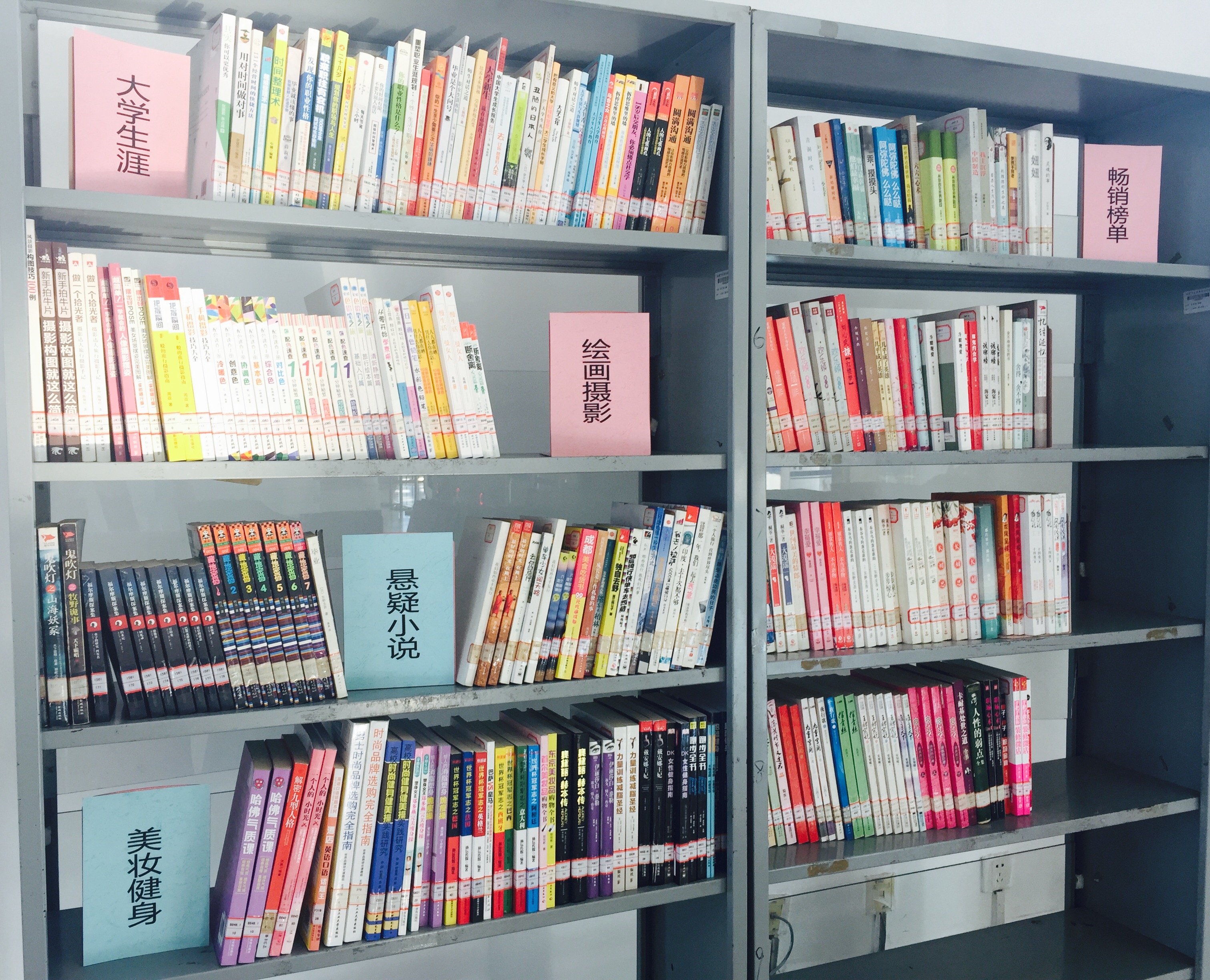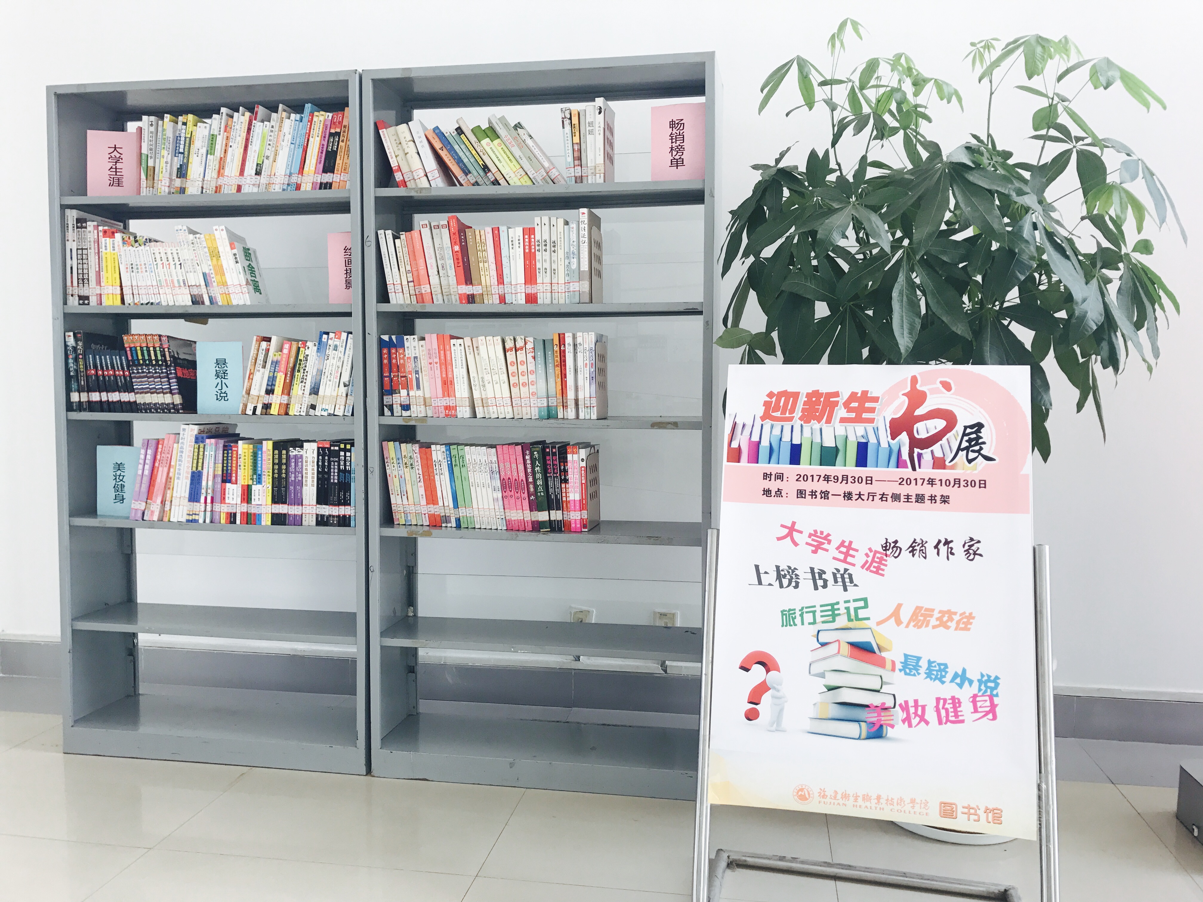 我們針對新生進行了調查問卷,根據問卷的結果精心挑選出近兩百本圖書展出,共分為暢銷榜單、大學生涯、人際交往、繪畫攝影、懸疑小說、美妝健身等類別。希望通過本次書展,新同學們能快速適應大學生活,養成良好生活習慣,精準制定奮斗目標,實現人生遠大夢想。