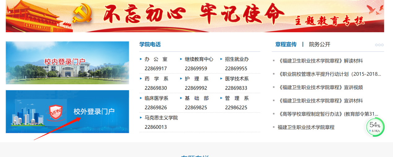 打開(kāi)瀏覽器,輸入網(wǎng)址:www.fjwx.com.cn/,進(jìn)入首頁(yè),點(diǎn)擊“校外登錄門(mén)戶(hù)”
