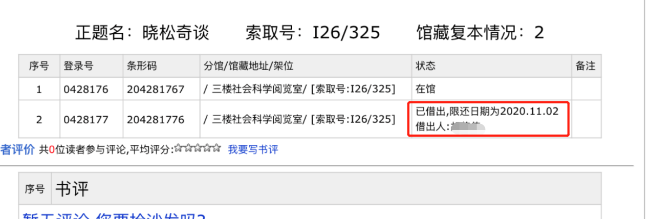 7、圖書(shū)如已借出,在書(shū)名詳情頁(yè)會(huì)顯示相關(guān)信息。