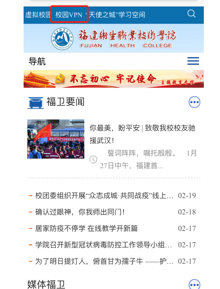 打開(kāi)手機(jī)瀏覽器,輸入網(wǎng)址:www.fjwx.com.cn,點(diǎn)擊“校園VPN”