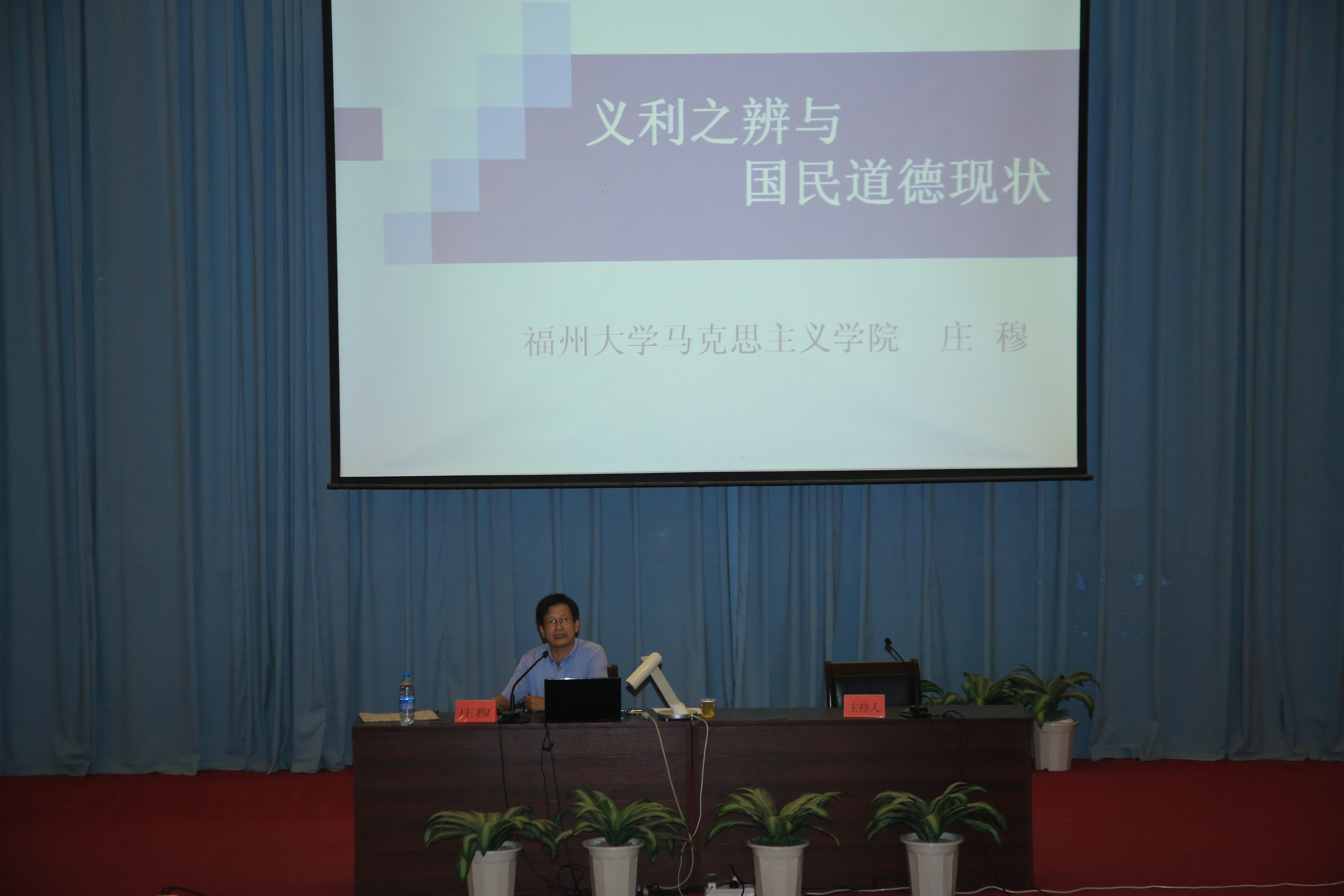 2013年10月15日下午,全國科學技術與社會研究會副理事長、福建省高校思想政治理論教學研究會副會長、福州大學馬克思主義學院院長暨碩士生導師莊穆教授應邀為我院師生做了題為《義利之辯與國民道德現狀》的專題講座。我院師生400多人齊聚學術廳聆聽了講座。