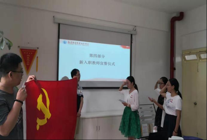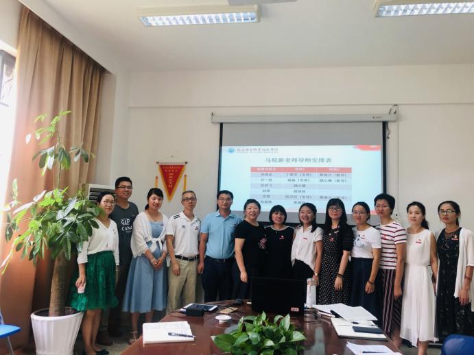 隨后,馬院全體教師在師德承諾書做出了鄭重的許諾,新入職教師面對黨旗進行了莊嚴的宣誓。為促進新教師更好成長,馬院精心遴選了教學和科研工作經驗豐富的教師作為導師幫扶指導新教師,現場舉行了簡單而隆重的拜師儀式,致力完成1年內的“5個一”成長計劃,即至少精上一門主干課、聽一門課、開一次馬院公開課、參與一項課題、撰寫一篇工作心得;3年內至少完成“5個一”成長計劃,即講好一門主干課、發表一篇C刊論文、作為主要完成人完成一項課題、參加一次校級及以上教學比賽、進行一次學術交流,充分發揮成長導師的傳幫帶作用,全方位引領和幫助新上崗教師成長。隨后,根據黨和國家對思想政治理論課教師的要求,與會人員對我院思政課教師宣誓詞(征求意見稿)進行熱烈探討。