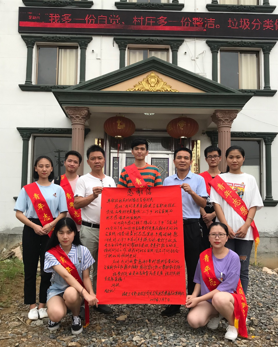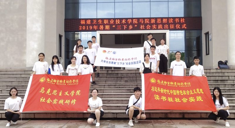 為深入貫徹習近平新時代中國特色社會主義思想和黨的十九大精神,踐行“不忘初心、牢記使命”,貫徹落實“健康中國”戰略和中央農村工作會議精神,結合我省實施鄉村振興戰略的實際,福建衛生職業技術學院馬克思主義學院院長熊美蘭等5位思政課教師集結習近平新時代中國特色社會主義思想讀書社和時代先鋒協會社團15位優秀學子,組建新思想讀書社實踐隊,于2019年7月6日至9日,赴福州市閩清縣梅溪鎮新民村開展主題三下鄉活動。