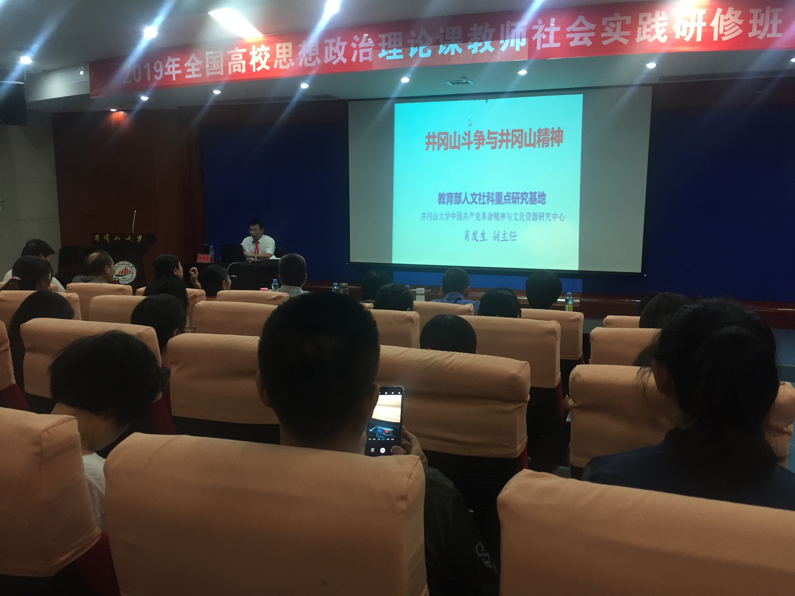 8月2日下午,由井岡山大學中國共產黨革命精神與文化資源研究中心副主任肖發生為全體學員作了題為《井岡山斗爭與井岡山精神》的報告。在3個小時的報告中,肖發生副主任介紹了井岡山革命根據地的基本概況、創建井岡山革命根據地的代表人物和斗爭歷史劃分,生動的井岡山紅色故事和感人至深的英烈事跡,毛澤東“上山”思想的形成與實踐以及井岡山精神實質的內涵等幾個方面,用深刻的歷史故事貫穿全場報告,以栩栩生動地言語讓老師們對井岡山的革命史和革命精神有了更為全面的理解。