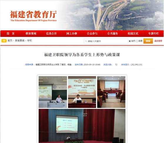 此次授課覆蓋全院2019級新生3600人左右,參會師生反映熱烈,此次講座的成功舉辦得到了福建省教育廳媒體報道。
