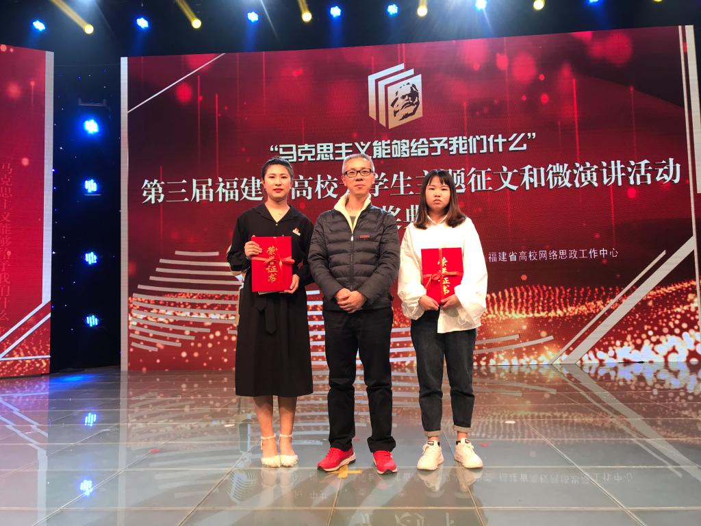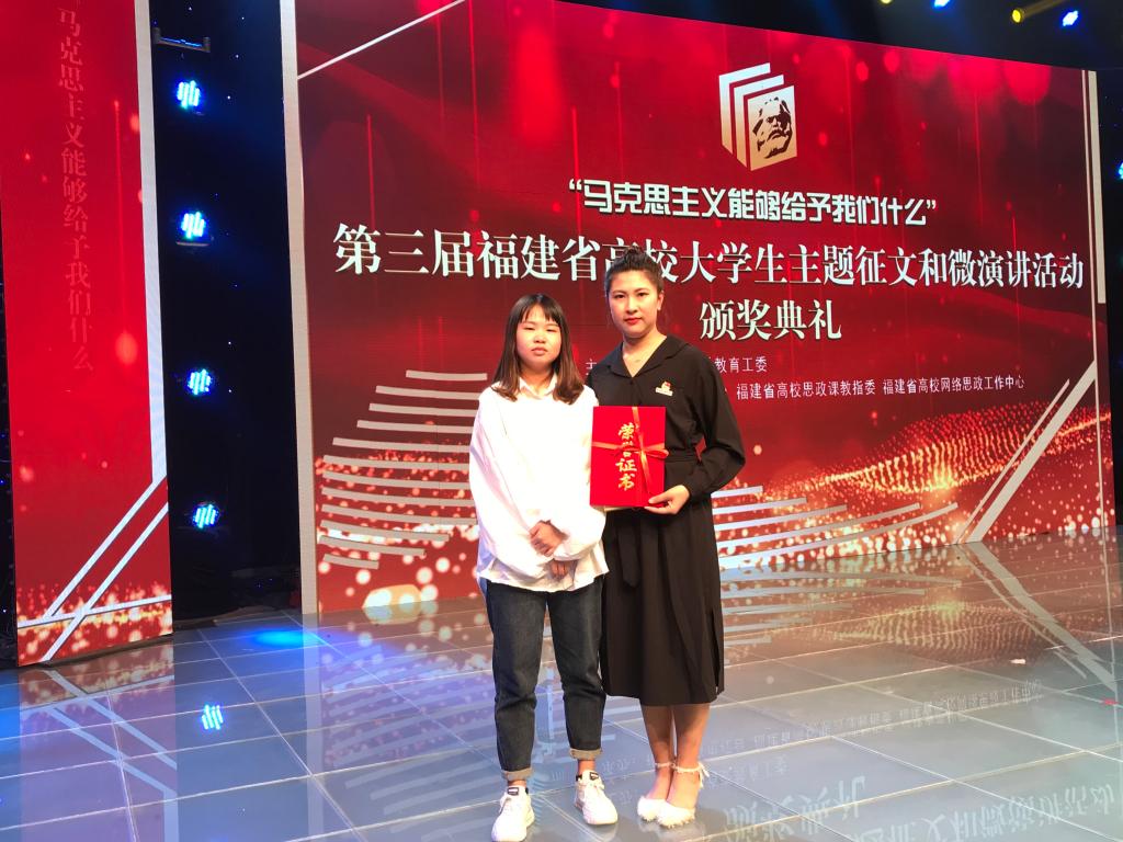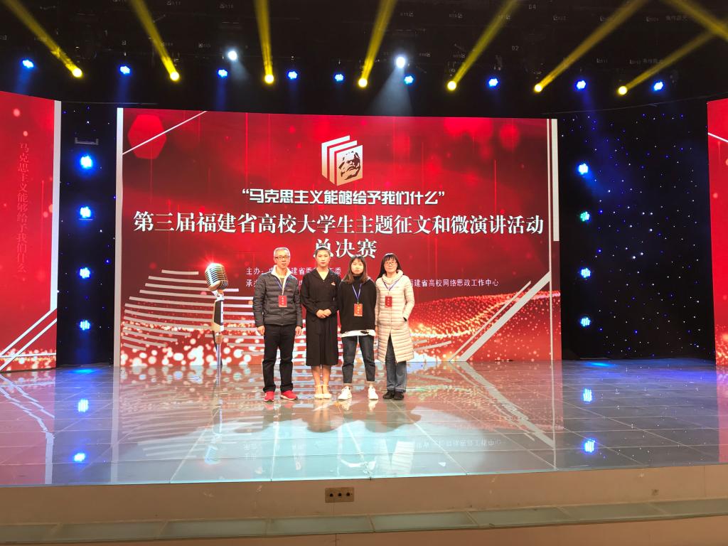 2019年12月4日,“馬克思主義能夠給予我們什么”第三屆福建省高校大學(xué)生主題征文和微演講活動總決賽在福建師范大學(xué)施學(xué)共樓演播廳落下帷幕,我校學(xué)生榮獲三等獎。