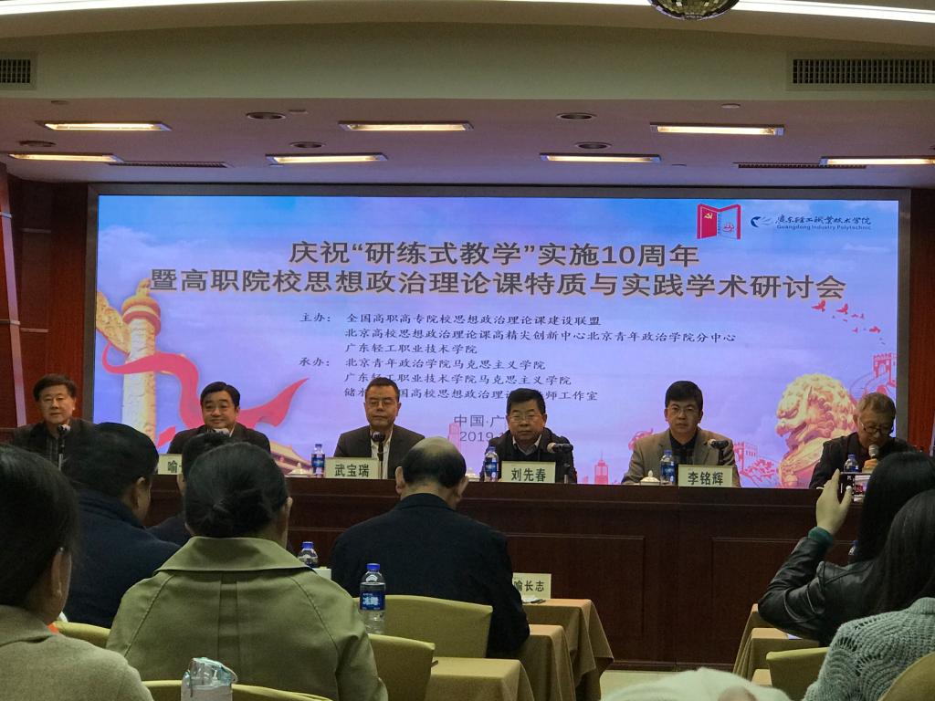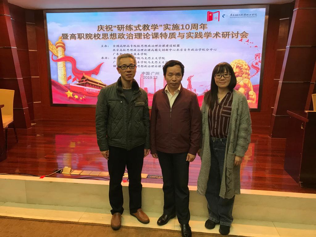 2019年12月20-22日,由全國高職高專院校思想政治理論課建設聯(lián)盟、北京高校思想政治理論課高精尖創(chuàng)新中心北京青年政治學院分中心聯(lián)合主辦,廣東輕工職業(yè)技術學院馬克思主義學院、儲水江全國高校思想政治理論課名師工作室承辦的“高職院校思想政治理論課特質(zhì)與實踐”暨“研練式教學”十周年學術研討會在廣州舉行。我校馬克思主義學院院長熊美蘭、概論教研室主任胡濟林參加此次研討會。