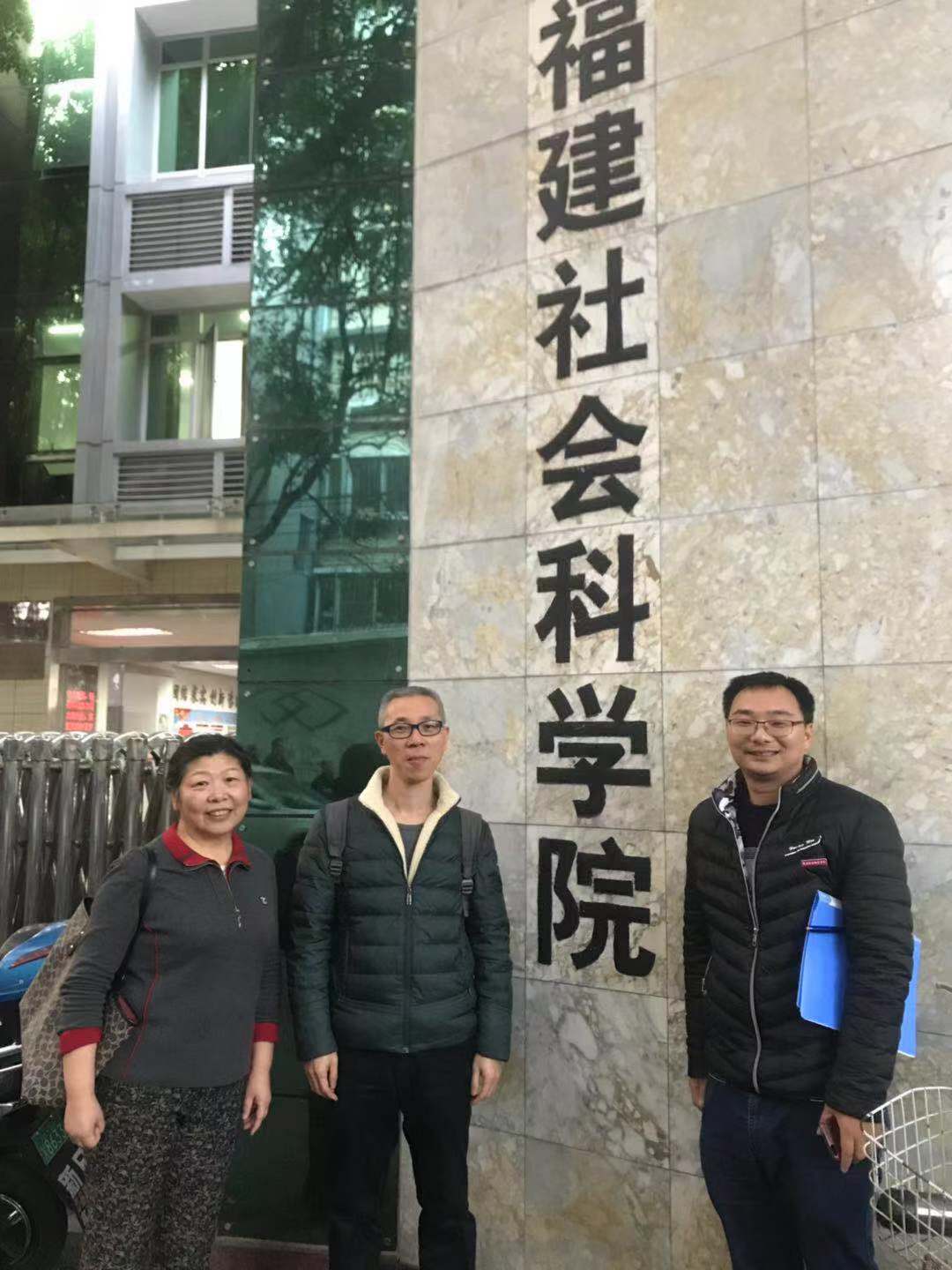 為了更好地開展我院教師承擔的省中特研究中心的課題,2020年1月3日下午,馬克思主義名譽院長魏立娜教授、概論教研室主任胡濟林副教授、張崇飛老師一行三人前往福建社會科學院調研,受到福建社會科學院現代臺灣研究所副所長、研究員蘇美祥的熱情接待。
