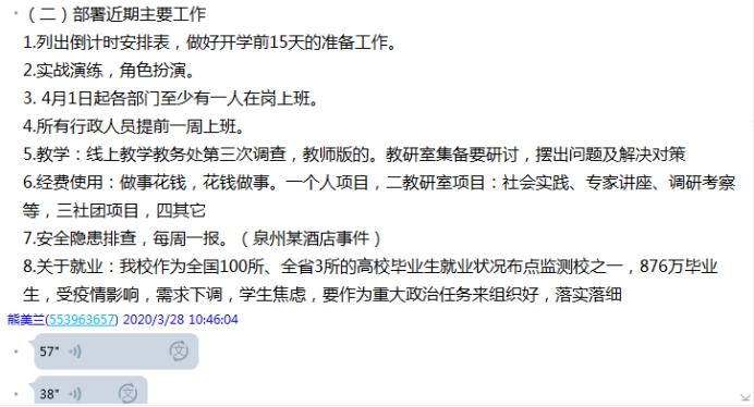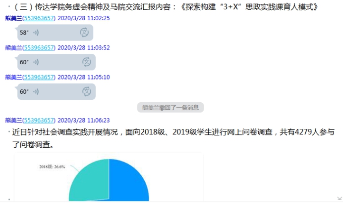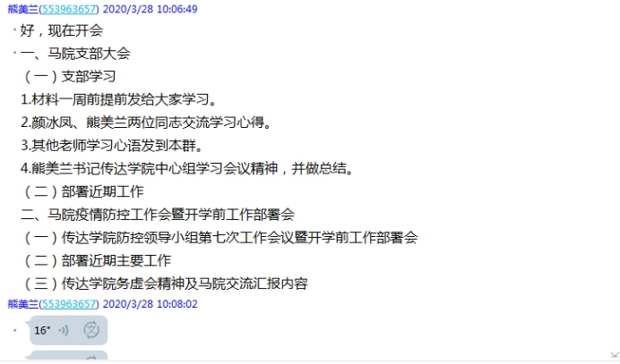 2020年3月28日上午,馬克思主義學院在線上召開了疫情防控工作會暨開學前工作部署會。會議由馬克思主義學院熊美蘭院長主持,馬院全體教師參加了會議。
