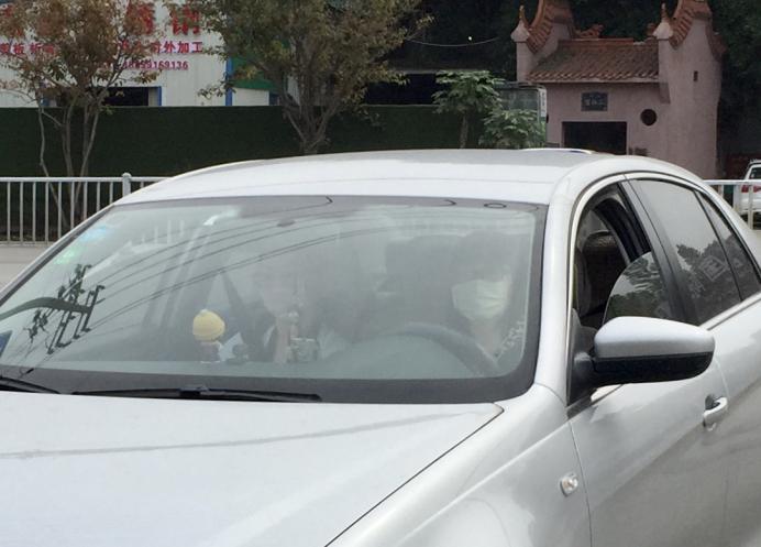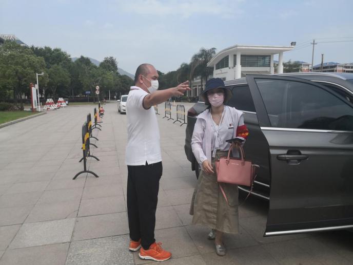馬克思主義學院院長熊美蘭扮演學生家長,自駕驅(qū)車帶領(lǐng)扮演學生的顏冰鳳老師來到學校,到校門口后,學生家長就此離開校園。