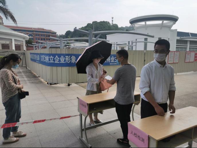 考生接受工作人員核驗身份、檢查“閩政通”健康碼、測量體溫。