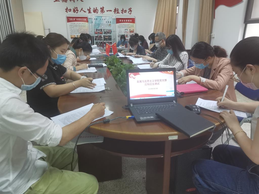 下午,集中召開馬院大會(huì)。首先,全體教師進(jìn)行黨支部應(yīng)知應(yīng)會(huì)測(cè)試。