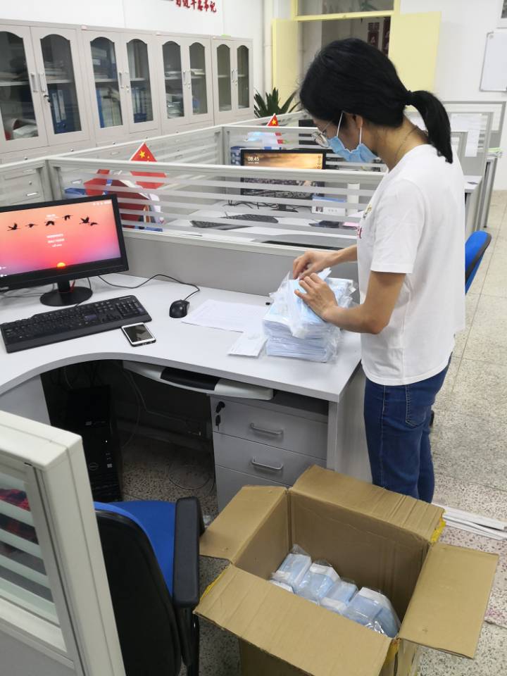 行政突擊隊(duì)清點(diǎn)并發(fā)放防疫物資。