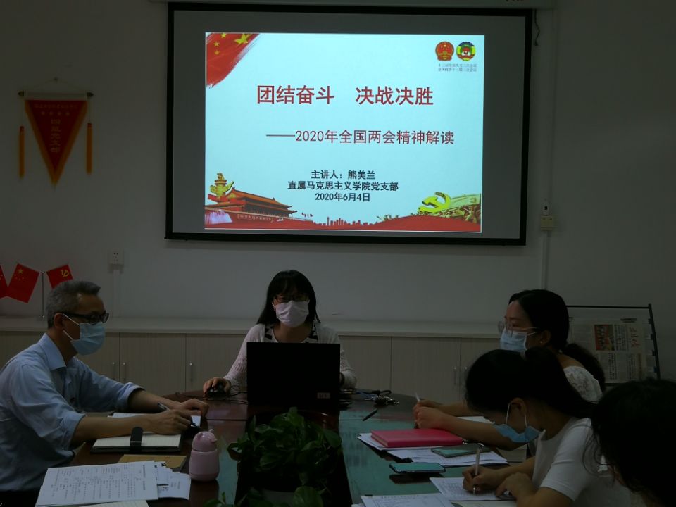 為深入學(xué)習(xí)2020年全國(guó)兩會(huì)精神,促進(jìn)兩會(huì)精神貫徹到實(shí)際工作中,2020年6月4日,直屬馬克思主義學(xué)院黨支部在行政樓107開展了2020年全國(guó)兩會(huì)精神專題學(xué)習(xí)活動(dòng),全體黨員教師參加了活動(dòng)。