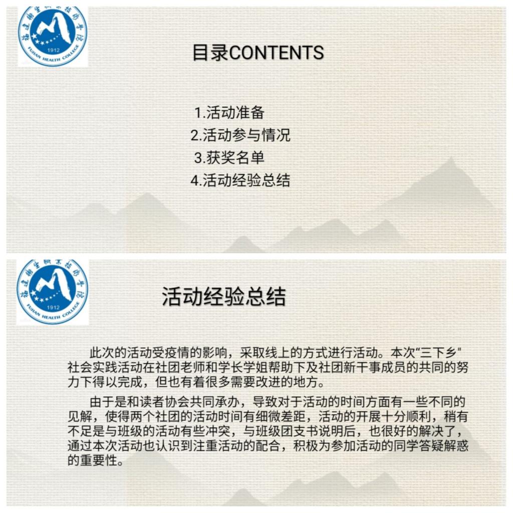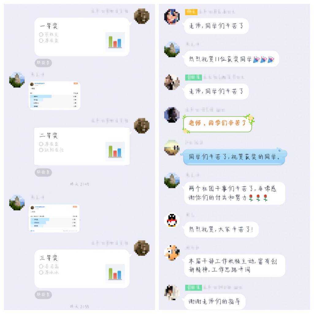 接著進入評審集體評議階段,先是廖佳盈、林學穎、蔡雅嵐、魏奕雪等同學對作品發表看法,再由胡濟林、江洪、楊盈、魏立娜和熊美蘭等5位指導老師對作品分別進行點評。所有參賽作品值得肯定的優點是,作品富有新意,有對紅色基地的講解,也有利用醫學專業優勢參與支教和新冠肺炎疫情防控活動;不足之處是作品的完整性欠佳,在開頭應介紹活動所處位置及歷史背景,需要多方位地展示社會實踐過程,而不以單一的圖片進行講解。最后進入評審結果階段,在讀書社總負責指導老師熊美蘭的主持下,在場的所有老師和社團干事通過QQ在線投票,決出一等獎1項、二等獎2項、三等獎3項和優秀獎5項。(具體名單附后)