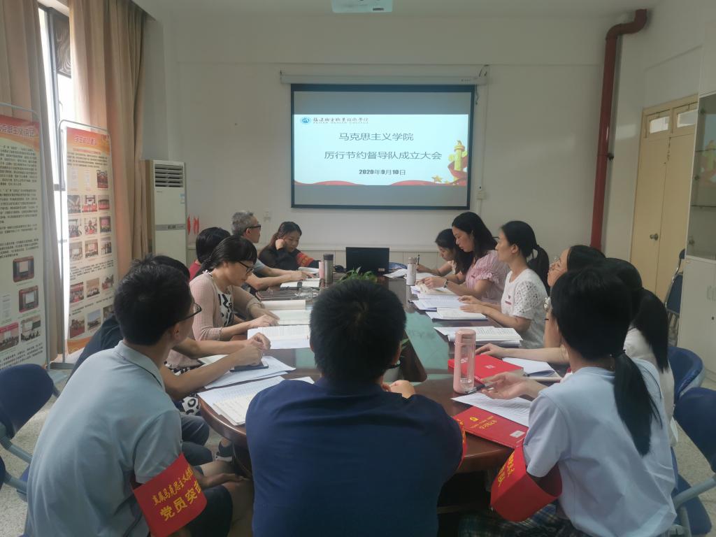 2020年9月10日上午,厲行節約督導隊成立大會順利召開。會上,全體教師簽訂了《福建衛生職業技術學院馬克思主義學院拒絕餐飲浪費承諾書》,以身作則,養成良好的節約意識,加強宣傳教育,營造健康氛圍。