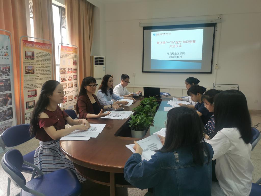 2020年10月6日,福建衛生職業技術學院2020年第四季福建省高校大學生馬克思主義理論“一‘馬’當先”知識競賽集訓開班儀式在馬克思主義學院會議室如期火熱舉行。參加開班儀式的有馬克思主義學院熊美蘭院長、楊盈主任、顏冰鳳老師、張天文老師和5位參加培訓的選手。開班儀式由馬克思主義學院熊美蘭院長主持。