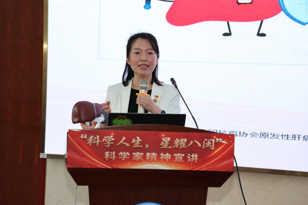 隨后,全國科學(xué)家精神教育基地吳孟超院士先進事跡展示館負責(zé)人、福建醫(yī)科大學(xué)孟超肝膽醫(yī)院黨政辦主任王家壽,福建省腫瘤質(zhì)控中心免疫治療質(zhì)控專家、福建醫(yī)科大學(xué)孟超肝膽醫(yī)院副主任醫(yī)師郭愛萍分別以《走進吳孟超的醫(yī)學(xué)世界》《肝病的防治策略科普及成功案例分享》為題進行吳孟超科學(xué)家精神主題宣講,通過豐富的史料、生動的故事、精彩的講授,傳遞吳孟超院士愛黨愛國愛民的“三愛情懷”和勇闖禁區(qū)、勇攀高峰、永不滿足、永遠爭先的四勇(永)精神。