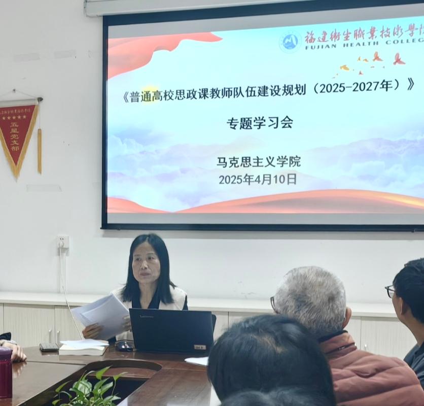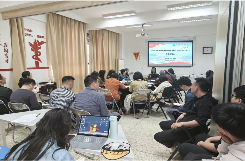 2025年4月10日,為深入貫徹落實中央教育工作領導小組秘書組印發的《普通高校思政課教師隊伍建設規劃(2025-2027年)》(以下簡稱)文件精神,馬克思主義學院召開專題學習會,部署未來三年重點工作。會議由馬院副院長來朋珍主持,全體專兼職思政課教師參會。