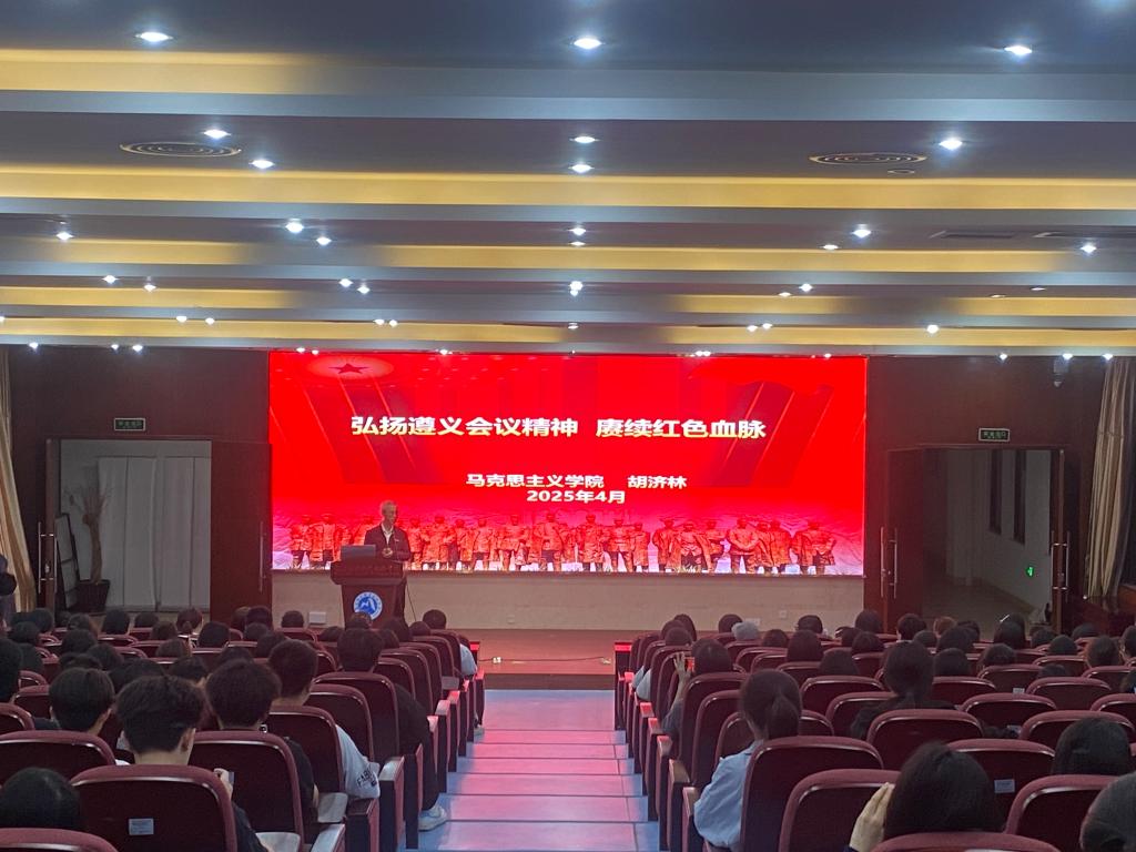 遵義會議精神是中國共產黨人精神譜系的重要組成部分,承載著我們黨的初心使命,揭示了我們黨的成功密碼。2025年是遵義會議勝利召開90周年,為深入學習宣傳貫徹習近平新時代中國特色社會主義思想和黨的二十屆三中全會精神,開展深入貫徹中央八項規定精神學習教育,2025年4月29日,馬克思主義學院副教授胡濟林在“一站式”學生社區篤行樓4樓報告廳舉辦《弘揚遵義會議精神 賡續紅色血脈》專題講座,習近平新時代中國特色社會主義思想讀書社全體成員及2024級學生共193人參加。