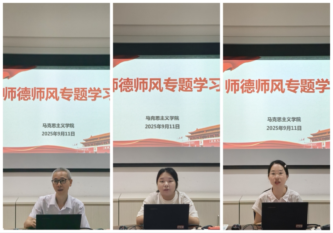 為加強師德師風建設,增強教師的立德樹人責任感與使命感,2025年9月11日,馬克思主義學院在厚德樓106會議室開展師德師風專題學習活動。活動由馬克思主義學院院長熊美蘭主持,馬克思主義學院全體教師出席本次活動。