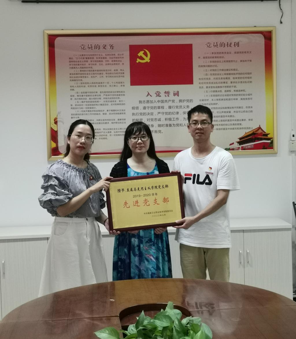 中國共產黨成立99周年之際,在學院“七一”表彰中,直屬馬克思主義學院黨支部榮獲“先進黨支部”榮譽稱號,來朋珍同志榮獲“優秀共產黨員”榮譽稱號,楊盈楊盈同志榮獲“優秀黨務工作者”榮譽稱號。