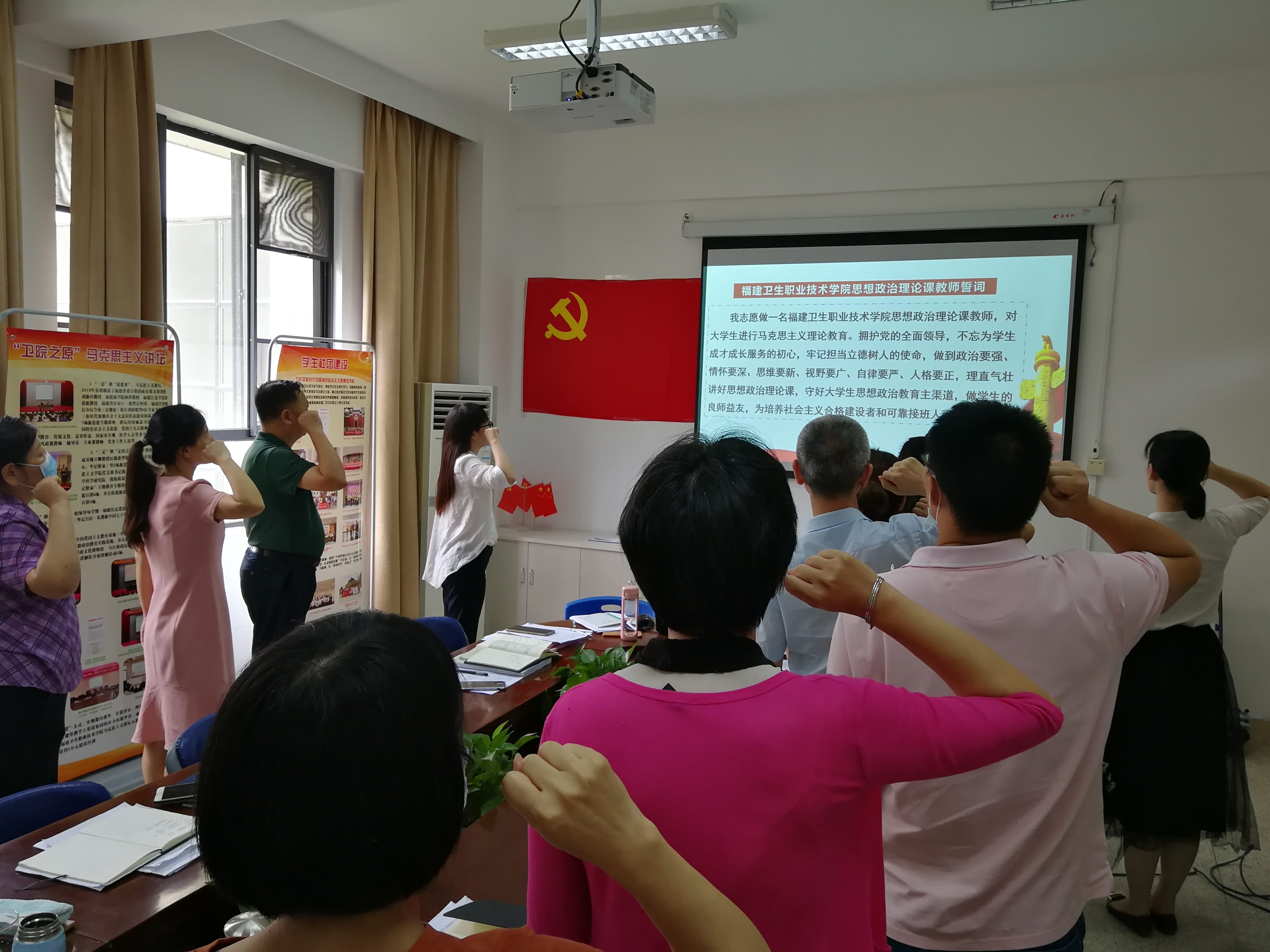 接著,舉行新轉正黨員入黨宣誓、支部老黨員重溫入黨誓詞;思政課教師宣誓。面對黨旗,新轉正黨員、支部老黨員重溫入黨誓詞,共同慶祝“政治生日”。在莊嚴的宣誓聲中,“初心不改,99如一”的信念激蕩在每位黨員的心頭,黨員們都表示要把初心和使命落實到教書育人的本職崗位上,充分發揮先鋒模范作用,勇挑重擔,扎實工作,不斷為學校事業建立新的功績。