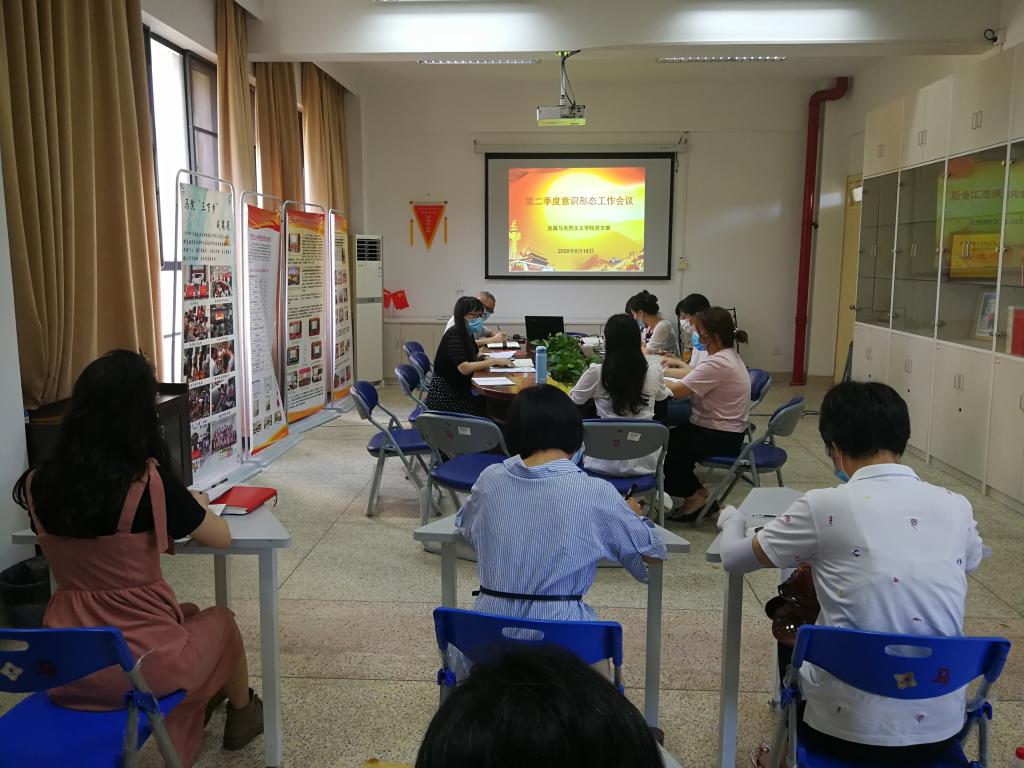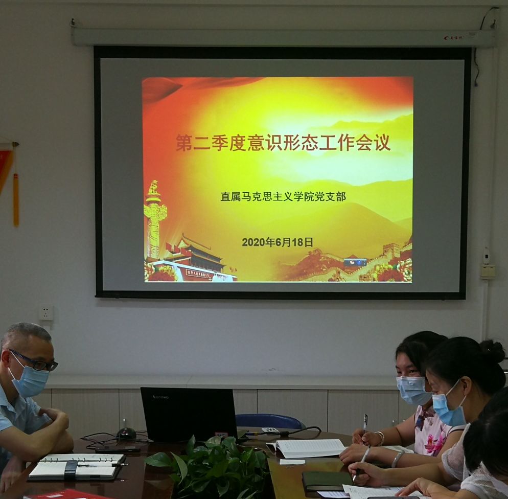 2020年6月18日上午,直屬馬克思主義學院黨支部在行政樓107會議室召開第二季度意識形態工作會議。會議由支部書記熊美蘭主持,支部全體黨員同志參加了會議。