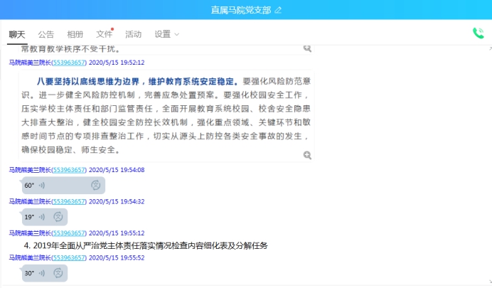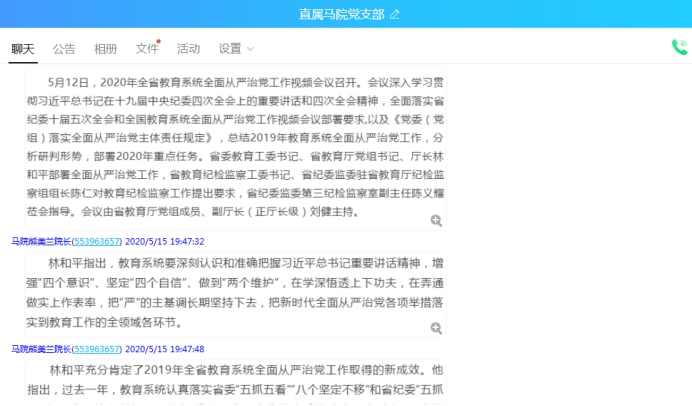 5月15日晚上7點30分,直屬馬克思主義學院黨支部在QQ群線上召開學習會暨新冠肺炎疫情防控工作會?;顒佑神R院黨支部書記熊美蘭主持,馬克思主義學院全體黨員參加了活動。