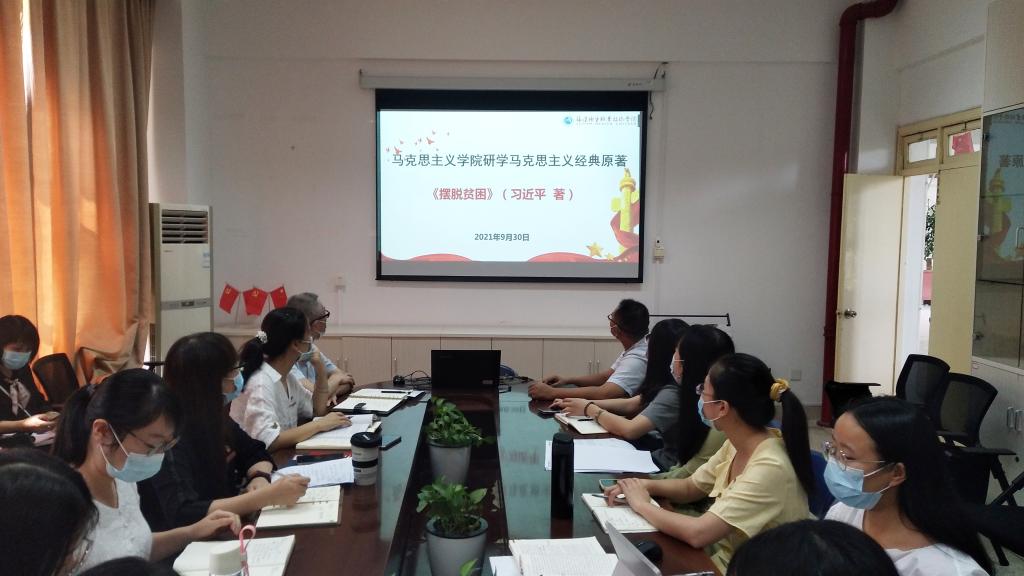 2021年9月30日上午,直屬馬克思主義學院黨支部在會議室107舉行了馬克思主義經典原著研學活動,此次活動由黨支部書記熊美蘭主持,林美辰同志線上主講,研學內容為習近平總書記《擺脫貧困》一書中的文章《弱鳥如何先飛》。