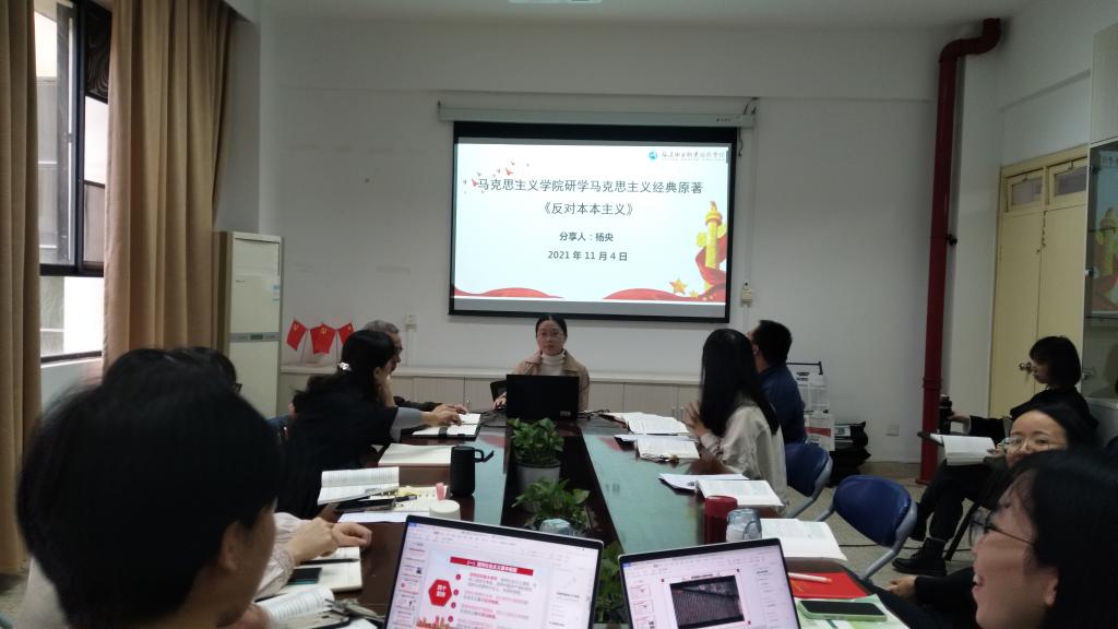 2021年11月4日上午,直屬馬克思主義學院黨支部第二黨小組在會議室107開展經(jīng)典研學分享活動。此次活動由黨支部委員羅蕓主持,楊央老師主講,研學內(nèi)容為毛澤東的《反對本本主義》。