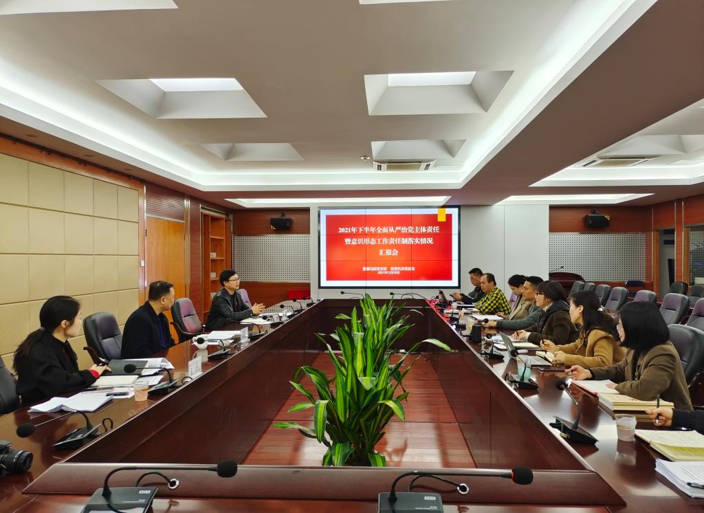 督查工作組聽取了馬院支部書記熊美蘭關于2021年度履行全面從嚴治黨主體責任和落實意識形態工作責任制的情況、上半年問題清單的整改情況,以及黨史學習教育、重點項目執行情況等方面工作匯報。她從“堅定不移維護核心”“全面從嚴治黨主體責任及意識形態工作責任制落實”“加強組織建設和作風建設”“加強紀律建設”及“存在的困難及問題”等五個方面展開匯報,并對上半年問題清單整改,以及今年的黨史學習教育、項目推進與資金執行等重要工作匯報。