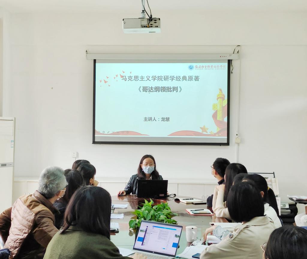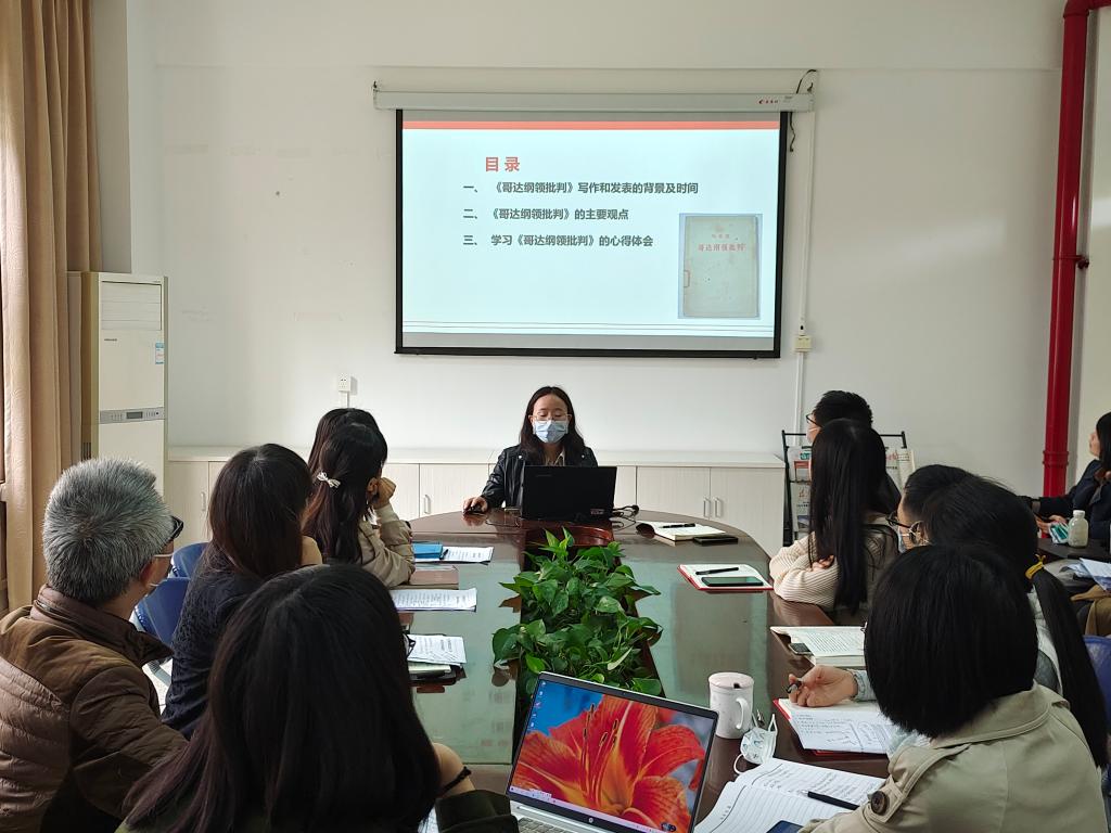 2022年4月21日上午,直屬馬克思主義學院黨支部第二黨小組在會議室107開展經典研學分享活動。此次活動由黨小組組長來朋珍主持,龍慧同志主講,研學內容為馬克思的《哥達綱領批判》。
