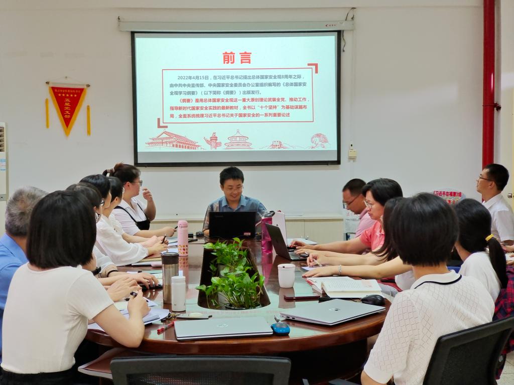 接下來,由黨小組代表王康同志領學《總體國家安全觀學習綱要》,并開展小組學習研討。各教研室代表教師結合課程內容研討如何有機融入。熊美蘭談到,要提高政治站位,深刻學習領會和把握總體國家安全觀的核心要義、精神實質,切實履行好維護國家安全的職責和義務,不斷提高擔當意識和履職能力;要發揮馬院先行示范,在學校廣大黨員干部中迅速掀起學習宣傳貫徹熱潮,堅持讀原著、學原文、悟原理,努力掌握貫穿其中的馬克思主義立場觀點方法,不斷深化認識,全面理解把握;要堅持學以致用,把學習貫徹《綱要》精神與國家安全形勢和任務結合起來,切實把學習成效轉化為堅決維護國家主權、安全、發展利益的生動實踐,以實際行動迎接黨的二十大勝利召開。