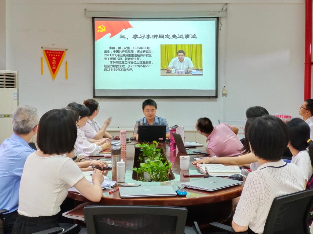 2022年6月30日,直屬馬克思主義學院黨支部第一黨小組在會議室107開展理論學習活動,學習內容有《百年大黨面對面》《總體國家安全觀學習綱要》、李翀同志先進事跡等,活動由黨小組組長羅蕓主持。